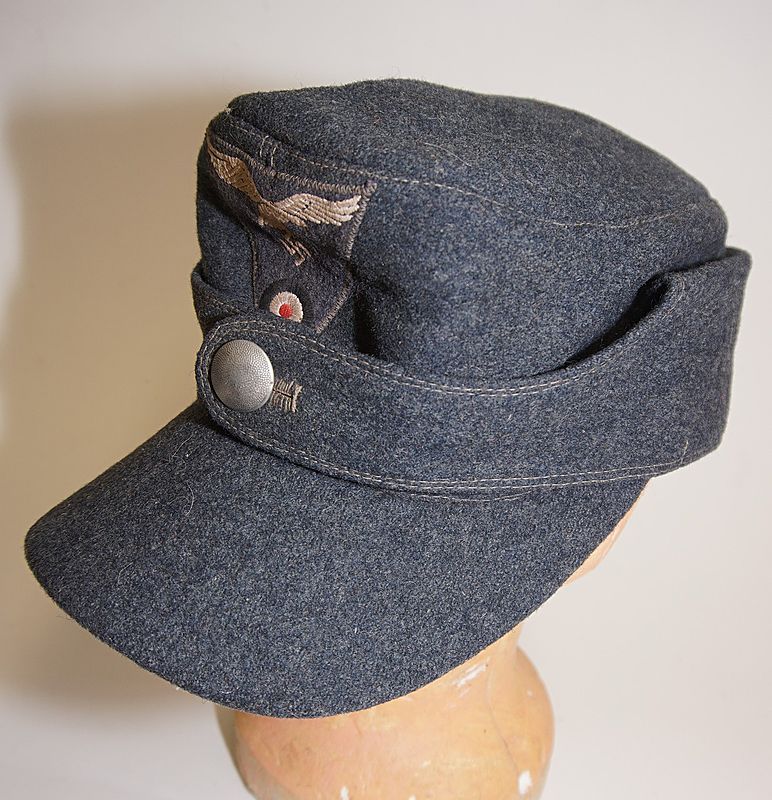 | Luftwaffe M-43 Einheitsfliegermütze Other Ranks Flight Cap - The Luftwaffe M-43 field cap was introduced for wear by all ranks on 27th September 1943 as a replacement cap for all other field caps then in use. The standard issue M-43 was constructed of Luftwaffe blue-grey wool with a rayon lining.